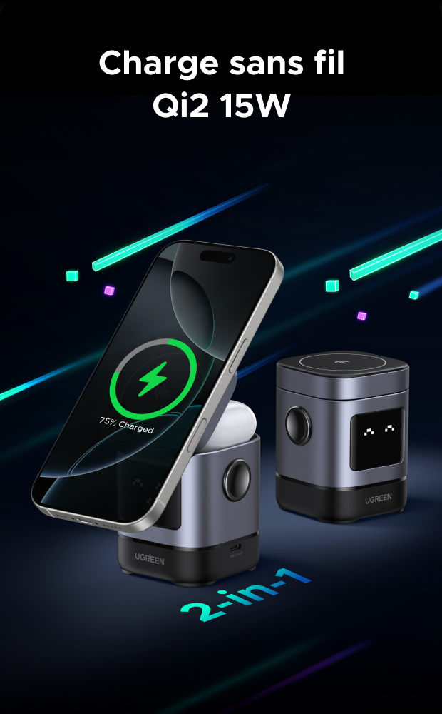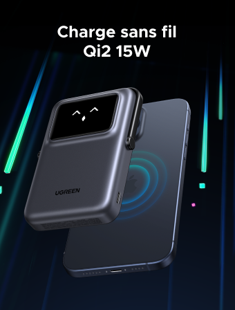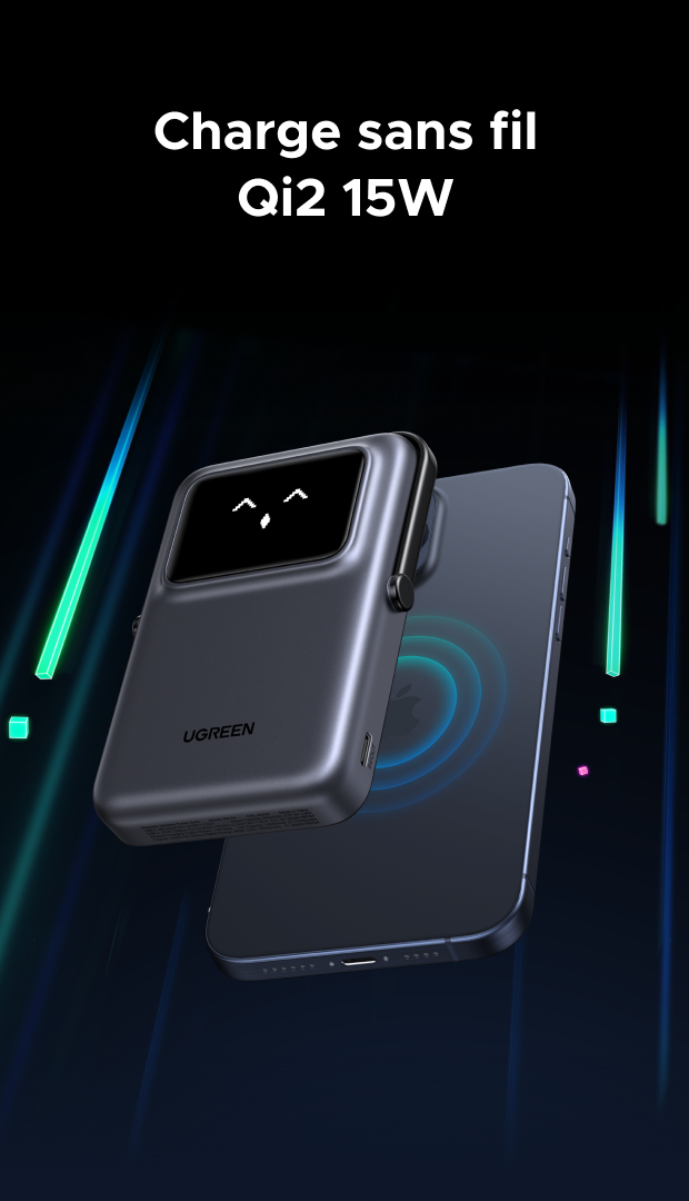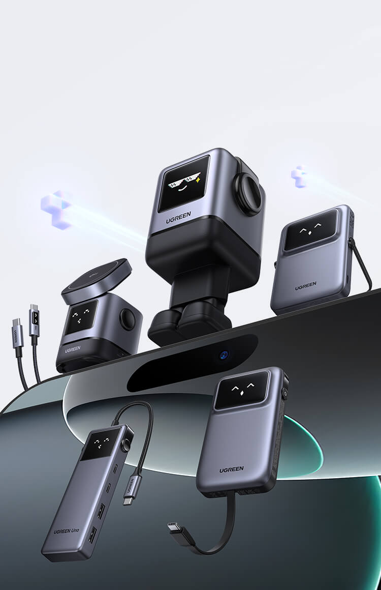 L’écran TFT affiche en temps réel l’état de charge à travers différents émojis mignons. Amusez-vous et découvrez encore plus d’émojis avec UGREEN Uno !