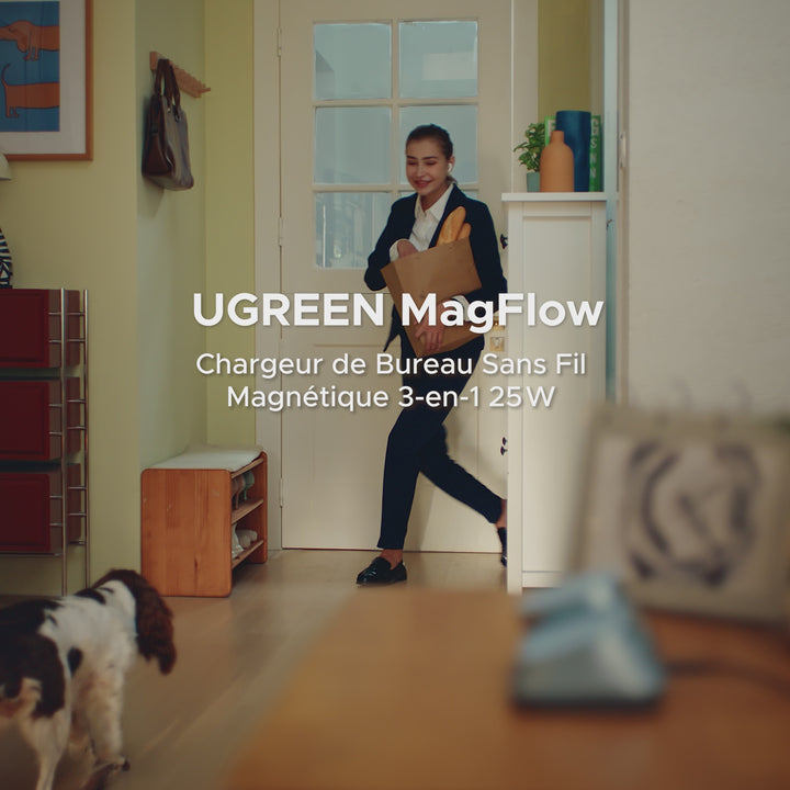 UGREEN MagFlow Chargeur sans fil magnétique 3-en-1 (Qi2 25 W, compatible MagSafe)