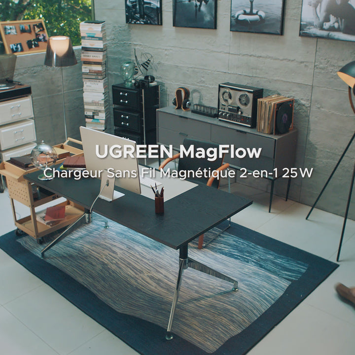 UGREEN MagFlow Chargeur sans fil magnétique 2-en-1 (Qi2 25 W, compatible MagSafe)