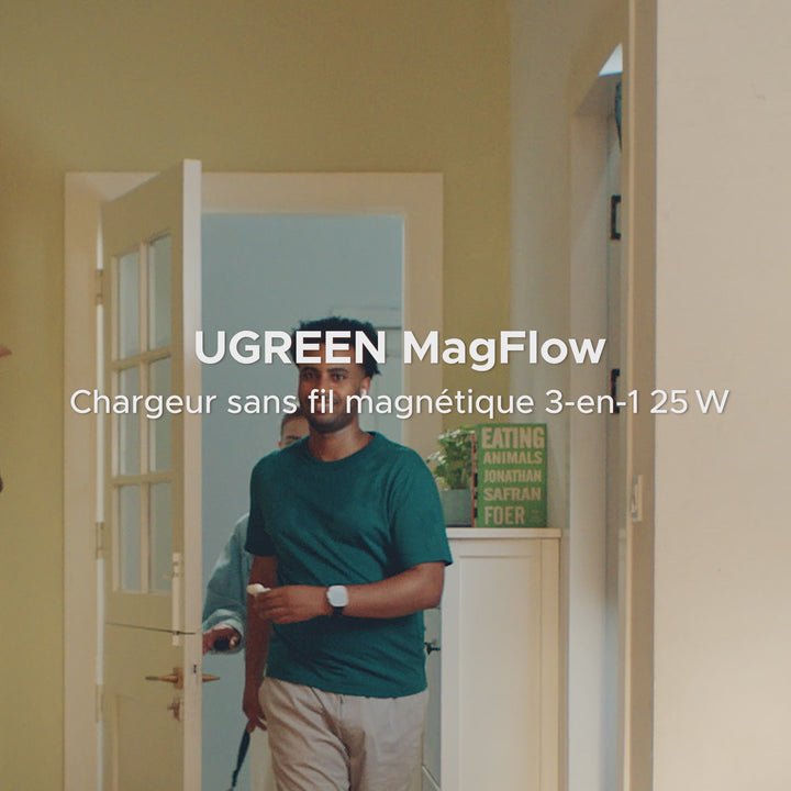 UGREEN MagFlow Chargeur sans fil magnétique 3-en-1 (Qi2 25 W, compatible MagSafe)